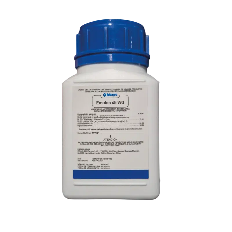 Emufon 45 WG es un insecticida agrícola en formulación granulada dispersable en agua (WG), desarrollado por Jebagro GmbH, que combina dos ingredientes activos con mecanismos de acción complementarios: