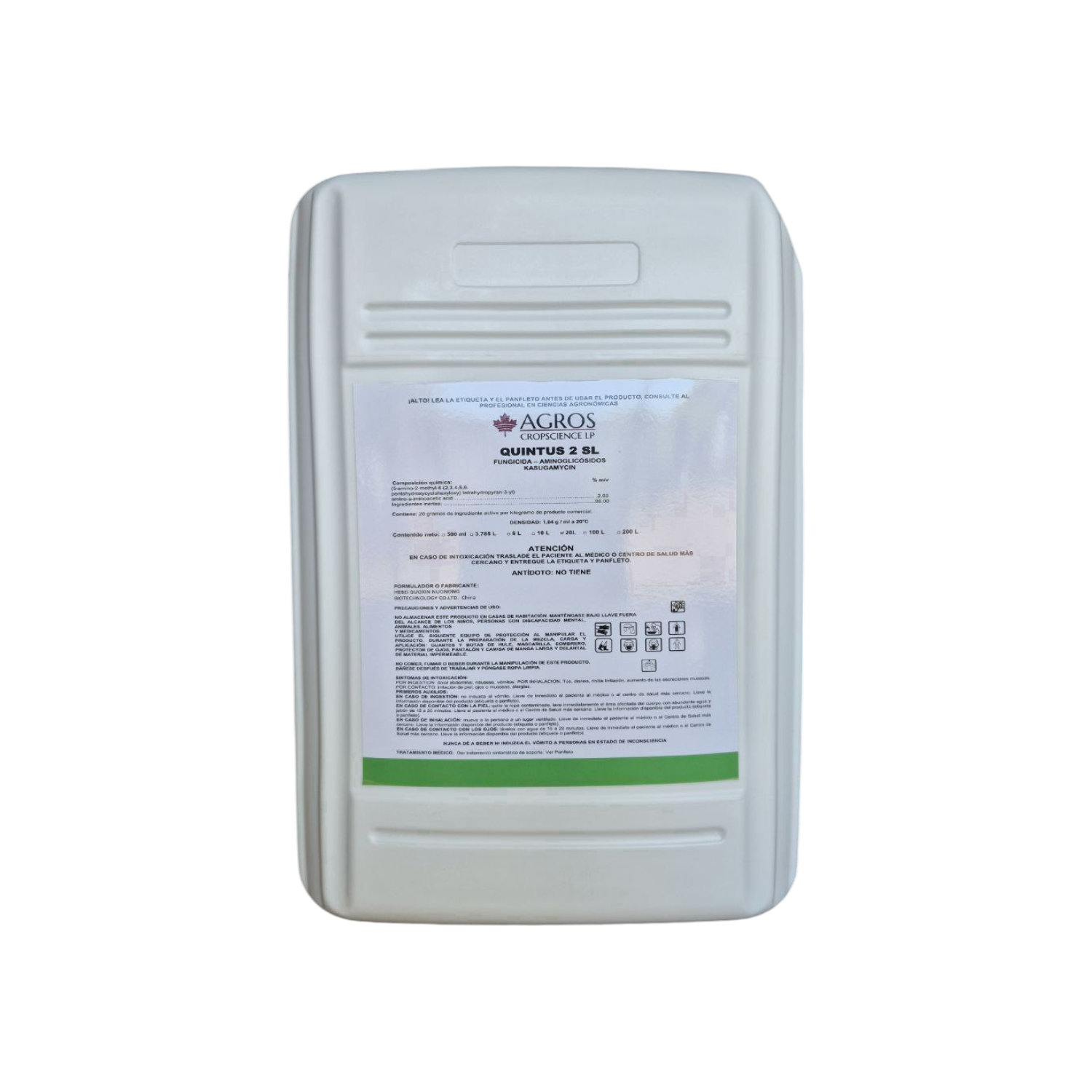 QUINTUS 2 SL es un fungicida–bactericida sistémico derivado de Streptomyces kasugaensis. Inhibe la síntesis proteica de los patógenos, con acción preventiva y curativa en arroz, tomate, ajo y cebolla.
